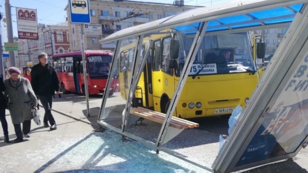 На Привокзальной площади в Саратове автобус протаранил остановку