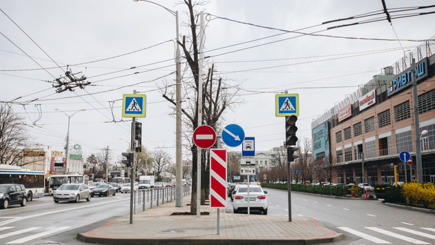 Фото: Денис Яковлев, «КИ» Дорожные знаки? Не смешите! По крайней правой полосе на участке от улицы Красной до Рашпилевской установили делинеаторы. Это специальные разделительные столбики дорожных полос. Они нужны, чтобы машины не перестраивались там, где это запрещено. Теперь водители не смогут выезжать на правую полосу, бросать там машины, мешая движению автобусов, маршруток и троллейбусов. — Раньше на этой полосе постоянно останавливались таксисты, и было не проехать. Последние два дня, как я заметил, полоса свободная, проезжаем быстро, никто не мешает, — рассказал водитель автобуса Марат. — Очень удобно сделали. Поставили бы такие делинеаторы по всему городу, я бы им в ноги поклонился, — говорит Александр, водитель троллейбуса. Изменениями остались довольны и пассажиры, которые садятся в общественный транспорт на этом участке. — Раньше я ждала автобус минут 14, сейчас где-то минуты 3-4. Постоянно были пробки, частники бросали свои машины возле остановки, все очень наглые, хамили. Сейчас я их не вижу и автобус жду минуты 3-4, — сказала Татьяна. — Наши водители так устроены, что им по барабану запрещающие знаки. Им надо физическое ограничение возвести, а лучше огромную китайскую стену, чтобы они начали соблюдать правила! — сетует Игорь, еще один пассажир. На участке улицы Северной, рядом с Рашпилевской, между двумя светофорами в сторону ТРЦ «Галерея», сделали специальный «островок». На нем краснодарцы могут ждать сигнала второго светофора. Переход по первому участку «зебры» займет 15 секунд, потом нужно стоять на островке, ждать около минуты, пока загорится второй разрешающий сигнал светофора. Второй «зеленый» горит 5 секунд — этого достаточно, чтобы перейти на сторону «Галереи». Рядом с «островком» установили специальную парковку для таксистов. Правда, водители личных авто в упор не видят, для кого предназначена эта парковка, и ставят в «карманы» свои легковушки. Только мы с фотографом вышли на парковку, туда уже подъехал эвакуатор и забрал одну из таких машин. Но других водителей это не испугало. Спустя несколько минут на парковке для такси стали парковаться новые машины. — Только для такси? А где это написано? А, вон знак висит! Ладно, щас уеду! — отвечает нам таксист, но с места не трогается. — Мне некогда с вами разговаривать, до свидания, — говорит другой водитель и закрывает окно в машине. Тем не менее нам удалось найти на парковке и водителя такси. Лично он остался доволен новыми парковками. — Раньше я постоянно мыкался по Северной, искал, где остановиться, было настоящее смертоубийство. Сейчас удобно: я звоню клиенту, говорю, что жду его на парковке, и машину быстро находят, — поделился впечатлениями Денис, водитель такси.