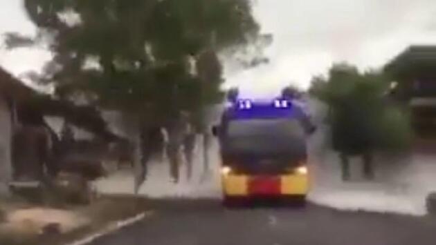 Экспресс мойка и дезинфекция улиц попала на видео в Индонезии