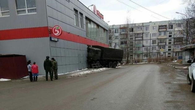 В Чехове военный «КамАЗ» врезался в стену супермаркета "Пятерочка"