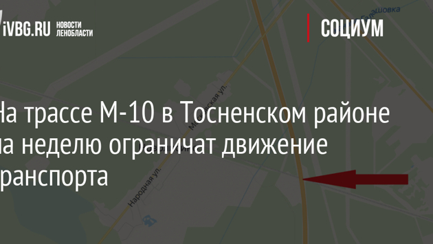 На трассе М-10 в Тосненском районе на неделю ограничат движение транспорта