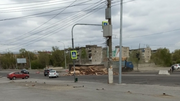 В Советском районе Волгограда опрокинулся грузовик с лесом: видео