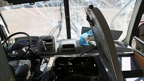 11 февраля 2015 года целью артиллерийского обстрела ВСУ стала центральная автостанция и металлургический завод в Ленинском районе Донецка. В результате погибло четыре мирных жителя, трое получили ранения. Ранним утром того дня 29-летний Кирилл Евсеев (имя изменено по просьбе героя) ехал на работу. Молодой человек добирался до места работы с автобусной пересадкой на автостанции «Центр». Около 7:20 Кирилл пересел на нужный ему маршрут до работы. «Мой автобус стоял вторым на платформе, рядом был припаркован жёлтый автобус «Эталон». В какой-то момент со стороны металлургического завода раздались взрывы. Один прогремел прямо рядом с моим автобусом», — вспоминает Кирилл. Его оглушило, несколько осколков попали в лицо, и он сразу выбежал с автостанции на улицу. Осколки попали и в глаза. Тем не менее, видеть Кирилл мог. И увидел, что жёлтый автобус «Эталон» объят пламенем. «Водитель автобуса сгорел заживо», — рассказал мужчина. Молодой человек позвонил родителям, сообщил о случившемся, а затем пешком отправился в больницу. Врачи извлекли осколки из мягких тканей и направили Кирилла в травматологию к окулисту. Там мужчине сделали операцию и удалили осколки из глаз. После этого Кирилл ещё две недели пролежал в больнице.
