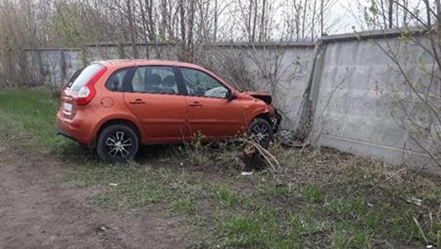 В Новокуйбышевске женщина на Lada Kalina врезалась в бетонный забор