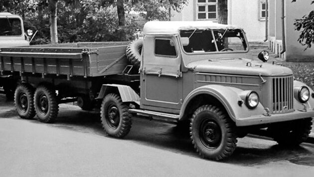 В далеком 1959 году специалистами автозавода из Ульяновска была разработана интересная модель седельного тягача, УАЗ-456. Внешне эта машина очень похожа на автомобиль, который сходил с конвейера другого советского автогиганта, Горьковского автозавода, на ГАЗ-69. И это не случайно. Ведь тягач разрабатывался на платформе именно этого популярного советского автомобиля. Позади кабины с водителем появилась конструкция, которая заменила второй ряд пассажирских сидений. Это было сцепное устройство седельного типа. В качестве прицепа использовался двухосный полуприцеп УАЗ-749. Общий вес всего груза, который мог перевезти грузовик, достигал двух тонн. Машина комплектовалась бензиновой силовой установкой, мощностью 55 лошадиных сил. Заводские и даже государственные испытания новинка прошла успешно. Седельный тягач был полностью готов к серийному производству. К большому сожалению, до массового производства оригинального грузовика дело так и не дошло. Хотя такой вид грузового транспорта мог бы быть хорошим подспорьем в самых разных отраслях отечественной промышленности и сельского хозяйства.