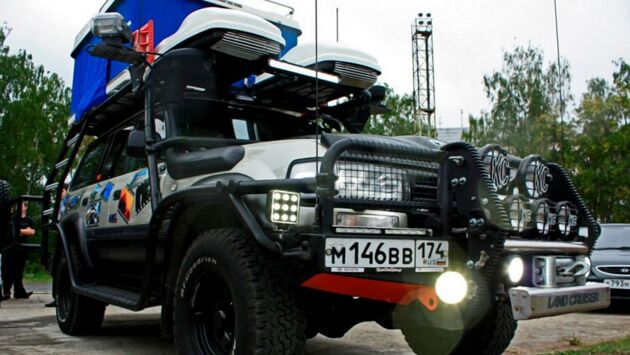 Несколько дней назад в одном из автомобильных сообществ социальной сети появились фотографии серьёзной внедорожной подготовки Toyota Land Cruiser 80. Поколение Land Cruiser с индексом "80" появилось на конвейере японского производителя Toyota 30 лет назад. Его оснащали широкой гаммой бензиновых и дизельных силовых агрегатов с мощностями от 136 до 215 лошадиных сил. Атмосферный дизель 1HZ объёмом 4.2 литра особенно полюбился автовладельцам, так как он обладает практически неограниченным ресурсом. Именно такой мотор установили на получившийся автомобиль, который владелец назвал "Железный Хеопс". Помимо внешнего силового каркаса, автомобиль оснастили огромным количеством приспособлений для долгих экспедиций в отрыве от цивилизации. В ДТП автомобиль защитит массивный "кенгурятник", на который установили дополнительные осветительные элементы и лебёдку. Для многочисленного скарба на крышу поставили два багажных бокса, а для отдыха экипажа там же размещена просторная автомобильная палатка от фирмы Maggiolina. Если судить по наклейкам на кузове, экспедиционный внедорожник уже серьёзно попутешествовал по России и владелец заверяет, что не собирается останавливаться.