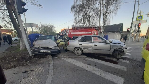 В Тюмени на перекрестке улиц Полевой-Пролетарской произошла серьезная авария. Автомобиль Daewoo Nexia проехал на красный сигнал и, столкнувшись с другой иномаркой, отлетел в светофор. ДТП произошло накануне вечером, 4 мая. Как сообщили ИА «Уральский меридиан» в пресс-службе ГИБДД по Тюменской области, Daewoo Nexia проехал на красный сигнал светофора. В результате он столкнулся с Hyundai Accent, в котором находились две девушки 27 и 30 лет. Фото: ЧС Тюмень В результате аварии пострадали две девушки и оба водителя. Всех четверых с травмами доставили в больницу. Обстоятельства ДТП выясняются. Фото: ЧС Тюмень Фото: ЧС Тюмень Накануне в Тюмени произошла еще одна жуткая авария. На улице Запольной, 16 опрокинулся и задымился Peugeot 308, в котором находились четыре человека. Трех пассажиров доставили в больницу. Новость по теме В центре Тюмени на скорости перевернулась и задымилась иномарка Фото превью: ЧС Тюмень