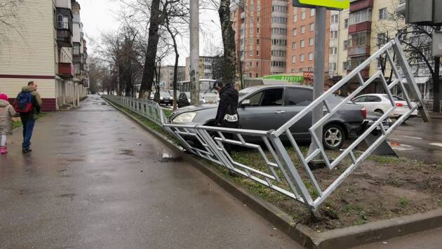 Иномарка врезалась в леерные ограждения на перекрестке в Вологде