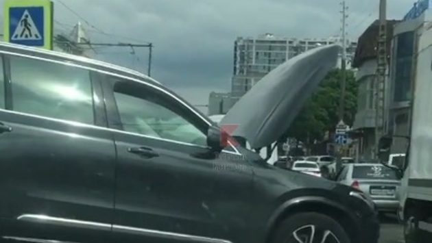 В Краснодаре столкнулись две иномарки на трамвайных путях