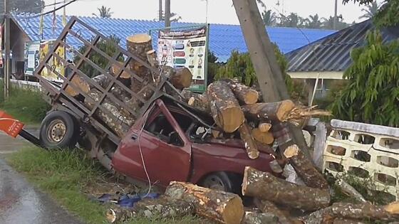 Столкновение небольшого, груженого дровами грузовика с электрическим столбом, 6 мая попало в объектив камеры наружного наблюдения, установленной на автотрассе в небольшом населённом пункте, расположенном в провинции Сонгкхла (юг Тайланда). Судя по сообщениям полицейских, из-за непогоды и скользкой дороги водитель не справился с управлением грузовика, который протаранил стоящий на обочине столб. Не обнаружив виновника происшествия на месте столкновения, стражи правопорядка объявили работника транспортной компании в розыск.