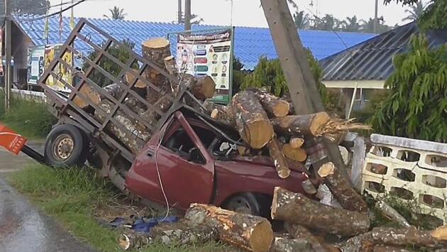 Грузовик с дровами не «разъехался» со столбом в Тайланде