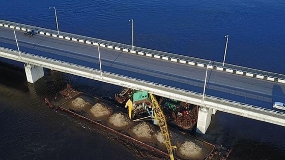 Баржа с подъемным краном врезалась в мост на реке в Пермском крае
