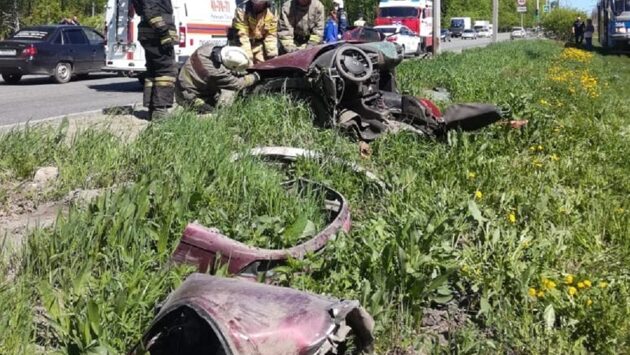 В Нижнем Тагиле «Нексия» разлетелась на части, въехав в столб