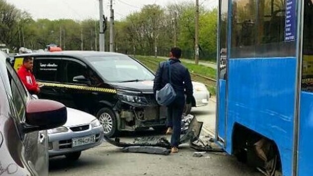 ДТП с участием вагона трамвая произошло днем 15 мая во Владивостоке. Как сообщает инстаграм-паблик dps.control, в районе пересечения улиц Луговая и Шепеткова у парка Минного городка водитель такси врезался в трамвай. Информации о пострадавших нет. Примечательно, что в ДТП попал вагон, который ранее власти Москвы подарили Владивостоку. Всего в столицу Приморья тогда доставили несколько таких трамваев.