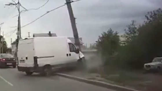 Удар и вспышка: в Екатеринбурге микроавтобус снес фонарный столб