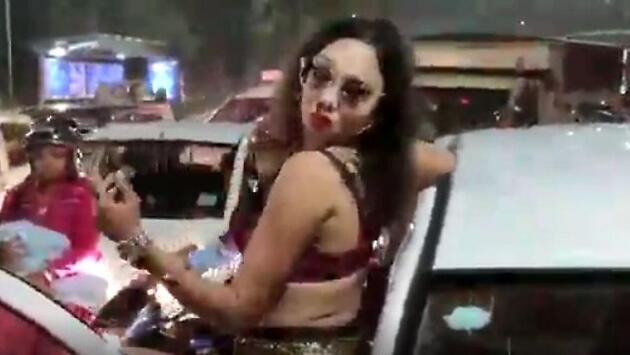 Девица получила свою «минуту славы» и не обращая внимания на ожесточенные знаки внимания в свой адрес, принимала различные позы. Известная в Индии светская львица организовала фотосессию на середине оживлённой трассы в Дели, чем вызвала волну гнева со стороны участников дорожного движения. Со слов очевидцев инцидента, девушка находилась в приподнятом состоянии духа, благодаря недавним излияниям.