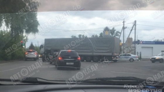 Автолюбители в популярном паблике «Автокадр_46» сообщают, что около шести часов вечера 19 мая на улице Чайковского фура столкнулась с автомобилем Госавтоинспекции. Обстоятельства ДТП и ущерб предстоит выяснить.
