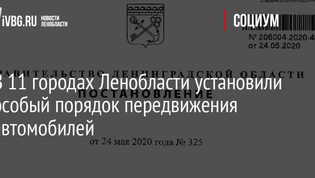 Власти Ленинградской области с 25 мая по 17 июня ввели в одиннадцати городах особый порядок проезда. Автомобилям предписано следовать через них без остановки. Как объясняют в региональном правительстве, соответствующее постановление губернатор подписал "в целях санитарно-эпидемиологического благополучия населения". Речь идет о следующих городах: Волхов, Ивангород, Кингисепп, Кириши, Лодейное Поле, Луга, Подпорожье, Светогорск, Сланцы, Сосновый Бор, Тихвин. Останавливаться в них запрещено автомобилям, следующим из других субъектов РФ, а также из районов Ленинградской области с повышенным риском распространения COVID-19 (это Выборгский, Всеволожский, Гатчинский, Кировский, Тосненский, Ломоносовский районы). Исключения могут быть сделаны для проезда до места работы или жительства, аварийного транспорта, межрегиональных перевозок, обеспечения безопасности населения, дорожной деятельности, а также автотранспорта спецназначения.