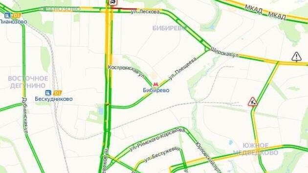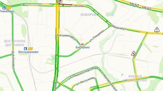 Утром 25 мая загруженность Алтуфьевского шоссе оценивается в три балла