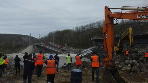 В Мурманской области разрушилась часть железнодорожного моста, по которому проходит единственная железнодорожная ветка, соединяющий Мурманск с остальной частью России. Об этом сообщает РИА "Новости" со ссылкой на региональный ГУ МЧС. Причиной обрушения стали растаявший снег и большая водность реки Кола, которые подмыли насыпь опоры моста на перегоне станции Кола – станция Выходной Мурманского отделения Октябрьской железной дороги в Кольском районе. На место происшествия работали сотрудники МЧС и ОАО "РЖД" и взаимодействующих структур. Отмечается, что ни один рабочий не пострадал. С субботы, 30 мая, на 1436 километре Октябрьской железной дороги полностью перекрыто движение по железнодорожному мосту, пассажиров перевозят автобусами. НОВОСТИ ПО ТЕМЕ: - В Днепропетровской области рухнул мост вместе с фурой - Под Псковом рухнул автомобильный мост - Мост рухнул в Подмосковье