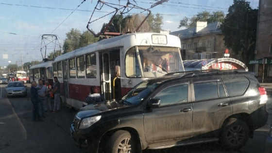 В Самаре трамвай протаранил Toyota Land Cruiser Prado