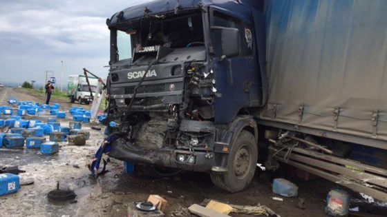 На трассе в Саратовском районе столкнулись две фуры. Пострадали оба водителя