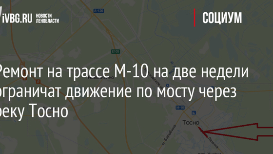Ремонт на трассе М-10 на две недели ограничат движение по мосту через реку Тосно