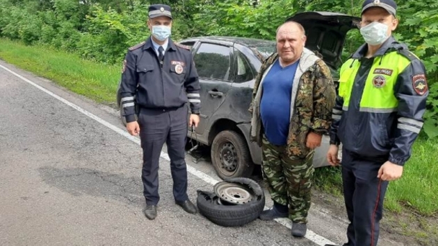В Воронежской области инспекторы ДПС помогли водителю, у которого взорвалось колесо