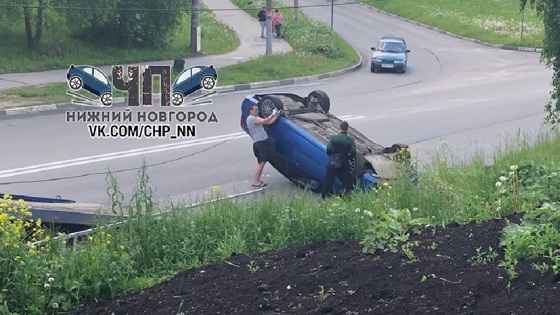 Водитель легковушки перевернулся и лег на крышу в Нижнем Новгороде