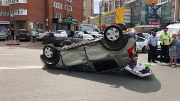 В Уфе в ДТП с дорогой иномаркой опрокинулась машина с 10-летним мальчиком