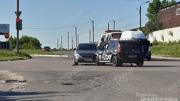 Автолюбители в популярном паблике «Автокадр_46» сообщают, около половины седьмого вечера 9 июня в районе Гремячки столкнулись «Приора» и такси «Рено». Никто не пострадал. Обстоятельства ДТП и ущерб предстоит выяснить.
