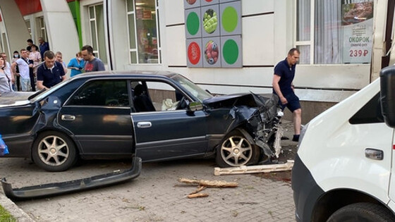Выехав на пешеходную зону, полицейский сначала врезался в дерево, после чего легковушку закрутило и занесло на троих человек. «Машина буквально впечатала их в стену супермаркета», — описывали случившееся очевидцы местным СМИ.