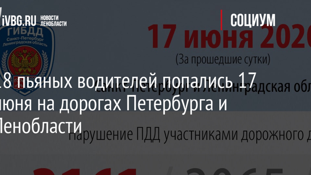 18 пьяных водителей попались 17 июня на дорогах Петербурга и Ленобласти