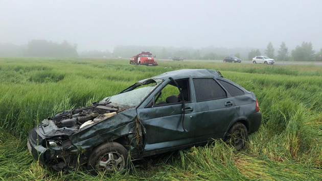На трассе М-5 в Рязанской области перевернулась «Приора»