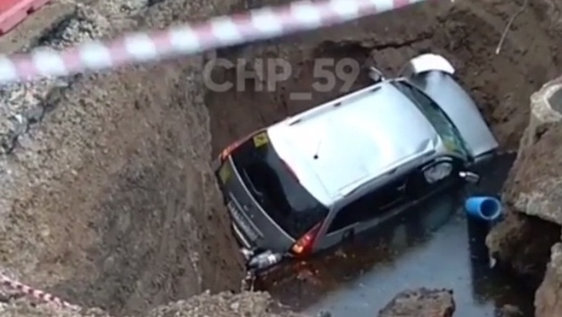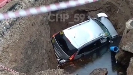 В Перми во время погони авто провалилось в яму