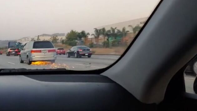 Полиция Калифорнии сообщила об аресте местного водителя, который умышленно пытался создать аварийную ситуацию. Поводом для ареста послужил недавний поступок американского водителя, который передвигаясь по дорогам общего пользования на своём минивэне, тащил на переднем бампере мотоцикл. Как именно крепился байк и с какой целью автомобилист его тащил впереди себя - выясняется полицией. Узнать об этом удалось от водителей, которые ехали в одном потоке с необычным минивэном серебристого оттенка. Сообщается, что не заметить такую машину было просто невозможно, так как из-под её днища вырывалось огромное количество искр. Удалось установить, что мотоцикл ехал по шоссе на скорости 105 км/ч. Его водитель не нарушал никаких правил. Однако, сзади в него въехал минивэн и после этого не остановился, а наоборот, продолжил ехать, пытаясь разогнаться. Мотоциклист не получил тяжёлых повреждений, но его отправили в больницу из-за болей по всему телу. Сейчас полиция предъявила обвинение водителю минивэна. Когда будет суд и что он решит в отношении опасного автомобилиста - пока неизвестно.