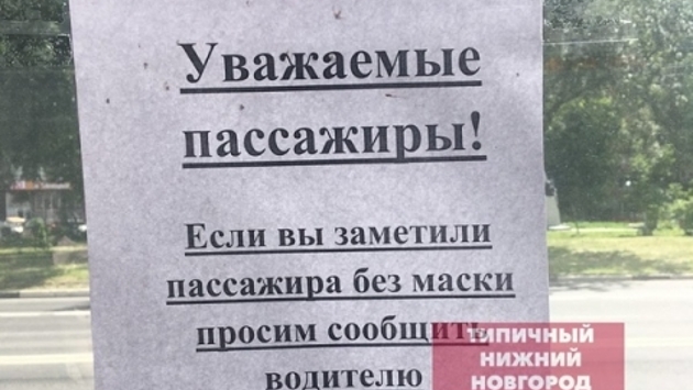 Пассажиров общественного транспорта просят сообщать о фактах нарушения масочного режима, пока – только водителям. Фото с соответствующим объявлением на маршрутке появилось в паблике «Типичный Нижний Новгород» в социальной сети «ВКонтакте». «Уважаемые пассажиры! Если вы заметили пассажира без маски, просим сообщить водителю», – говорится в обращении. Стоит отметить, что на сей раз большинство пользователей в комментариях не были возмущены просьбой ябедничать на других пассажиров. На резкие высказывания противников масочного режима нижегородцы предлагали пожалеть водителей, которому грозит штраф за отсутствие СИЗ у пассажиров. «Водитель в ответе за каждого пассажира и он не хочет за Вас платить штраф – написал комментатор с ником Niko Cross. Надо признать, что нижегородцы действительно плохо соблюдают масочно-перчаточный режим. В этом лично убедился корреспондент Newsroom24, которому довелось совершить поездку на автобусе в выходной день. Несмотря на то, что все места для сидения в ЛиАЗе были заняты, в масках были всего два человека, а в перчатках – один единственный добросовестный пассажир. Ранее нижегородцы пожаловались губернатору Нижегородской области Глебу Никитину на очереди у канатной дороги.