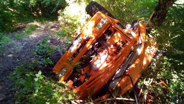 В Сочи на крутом склоне "КамАЗ" рухнул в обрыв