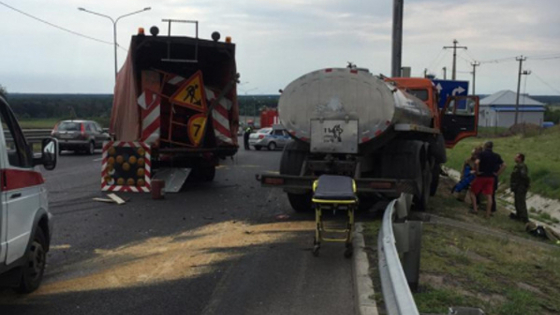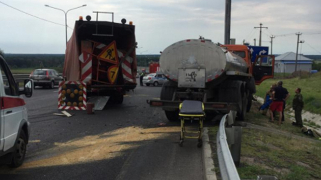 В Воронежской области на трассе водитель «КамАЗа» протаранил автопоезд дорожников