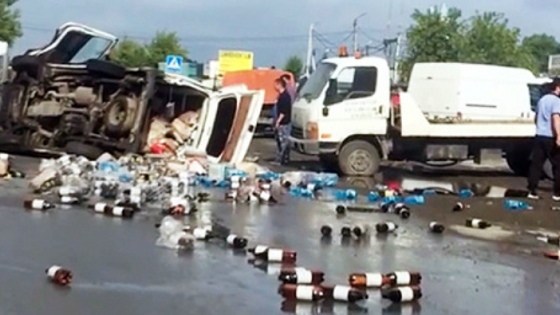 В группе новосибирской службы эвакуации «АСТ-54» сообщается о том, что сегодня в Кировском районе Новосибирска, напротив торгового города «Левобережный» произошло ДТП – там Ford Transit столкнулся с грузовиком, перевозившим пиво в бутылках. При столкновении груженое авто опрокинулось на правый бок, на проезжую выкатились бутылки с пивом. Предварительно сообщается, что в данной аварии никто из людей не пострадал. Тем временем пользователи сети не скупились на остроумные шутки по этому поводу: одни готовы были бежать на место аварии, другие выразили сожаления по поводу того, что рядом не перевернулся грузовик с воблой, третьи отметили, что «уик-энд начинается неплохо». Фото: АСТ-54