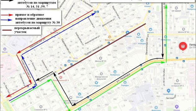 Из-за ремонта улицы Туркестанской в Оренбурге изменится схема движения автобусов