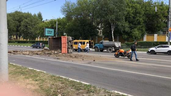КамАЗ перевернулся на проспекте Гагарина в Нижнем Новгороде
