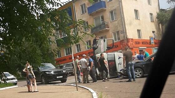 Машина скорой помощи перевернулась после столкновения с иномаркой в центре Читы