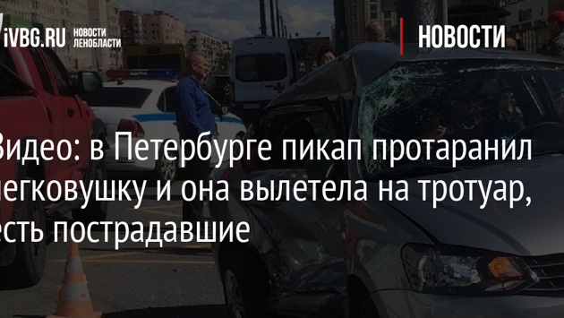 Видео: в Петербурге пикап протаранил легковушку и она вылетела на тротуар, есть пострадавшие