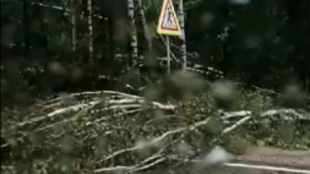 Трассу Кострома - Нерехта завалило поваленными деревьями