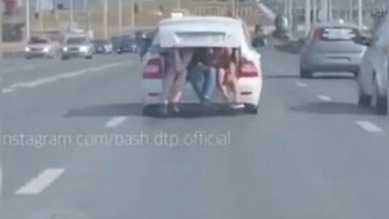 В Уфе на видео попало то, как трое парней катались в открытом багажнике легковушки
