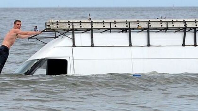 Мужчина бросился в море за тонущим фургоном ради спасения сигарет