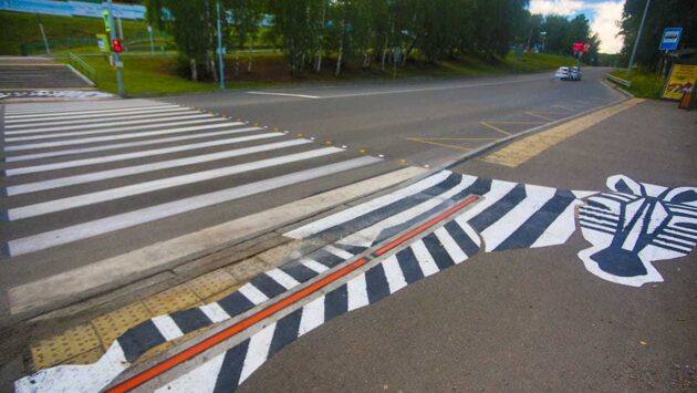 Первый «лежачий» светофор в Красноярске оборудовали на пешеходном переходе к парку флоры и фауны «Роев ручей». Подсветка на асфальте дублирует цвета основного регулировщика, чтобы привлечь внимание пешеходов. Скоро появится и дополнительная подсветка для водителей – она будет загораться перед стоп-линией. «Такое напоминание прямо под ногами заостряет внимание, особенно маленьких детей. Новыми светодиодными фонарями усилили подсветку пешеходного перехода, чтобы в вечернее время было комфортно переходить дорогу», - рассказал в Instagram мэр Красноярска Сергей Еремин. Внимание маленьких пешеходов привлекает креативное оформление пешеходного перехода. Он выкрашен в виде зебры – к официальной разметке подрисованы морда и хвост животного. Добавим, что «лежачие» светофоры разработали красноярские проектировщики.