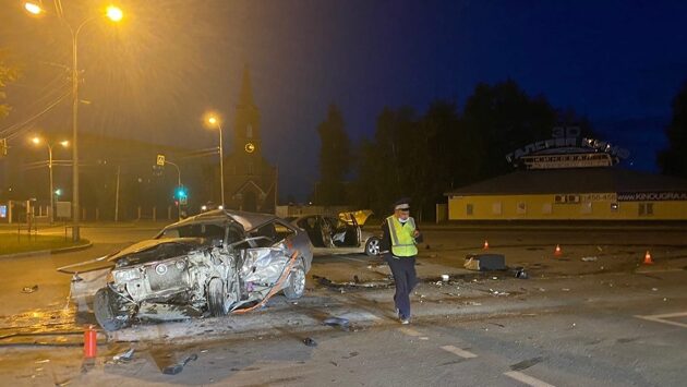 Сегодня, 25 июля, ночью в Сургуте на Набережном проспекте напротив «Галереи кино» Lada столкнулась с BMW. Как сообщает подписчик сообщества во «ВКонтакте» «Инцидент Сургут», водитель Lada погиб на месте. Фото: «Инцидент Сургут» / vk.com Фото превью: «Инцидент Сургут» / vk.com