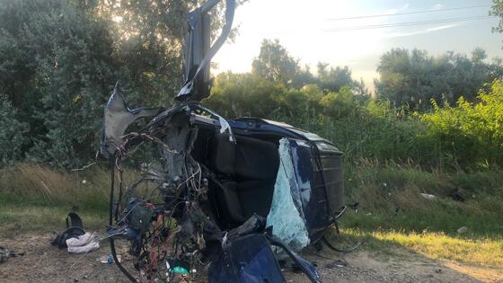 На Кубани в результате аварии с зерновозом "разорвало" легковой автомобиль